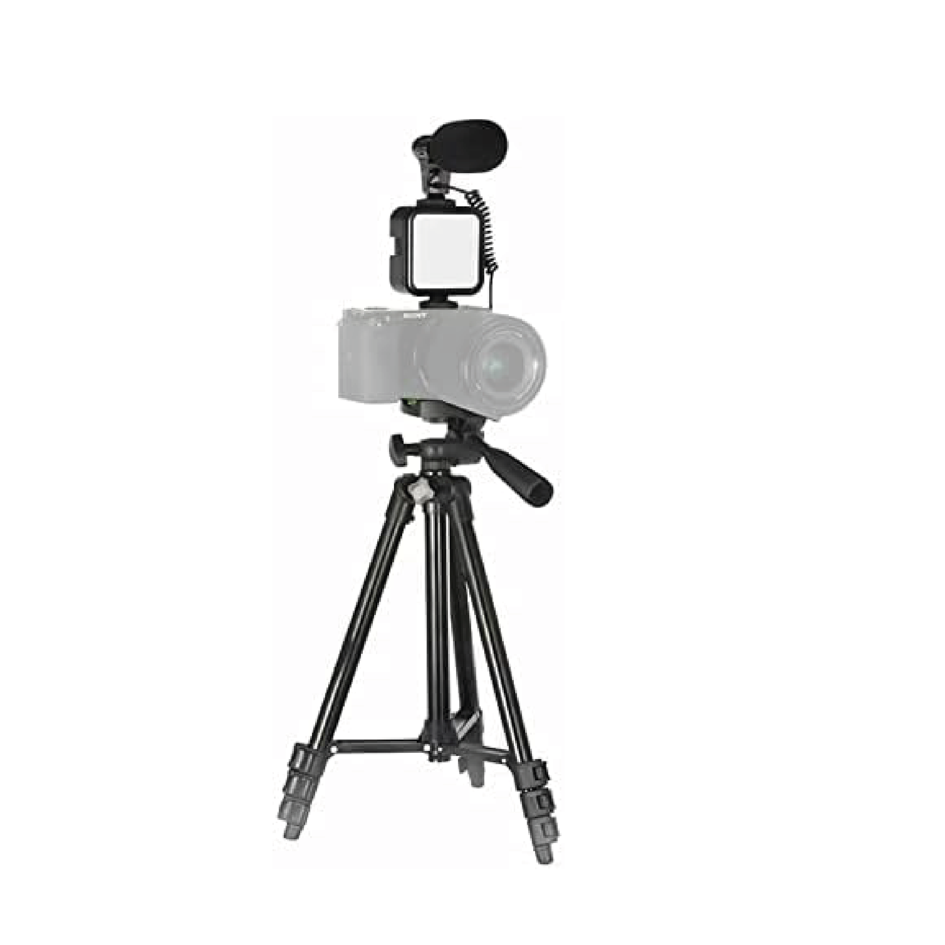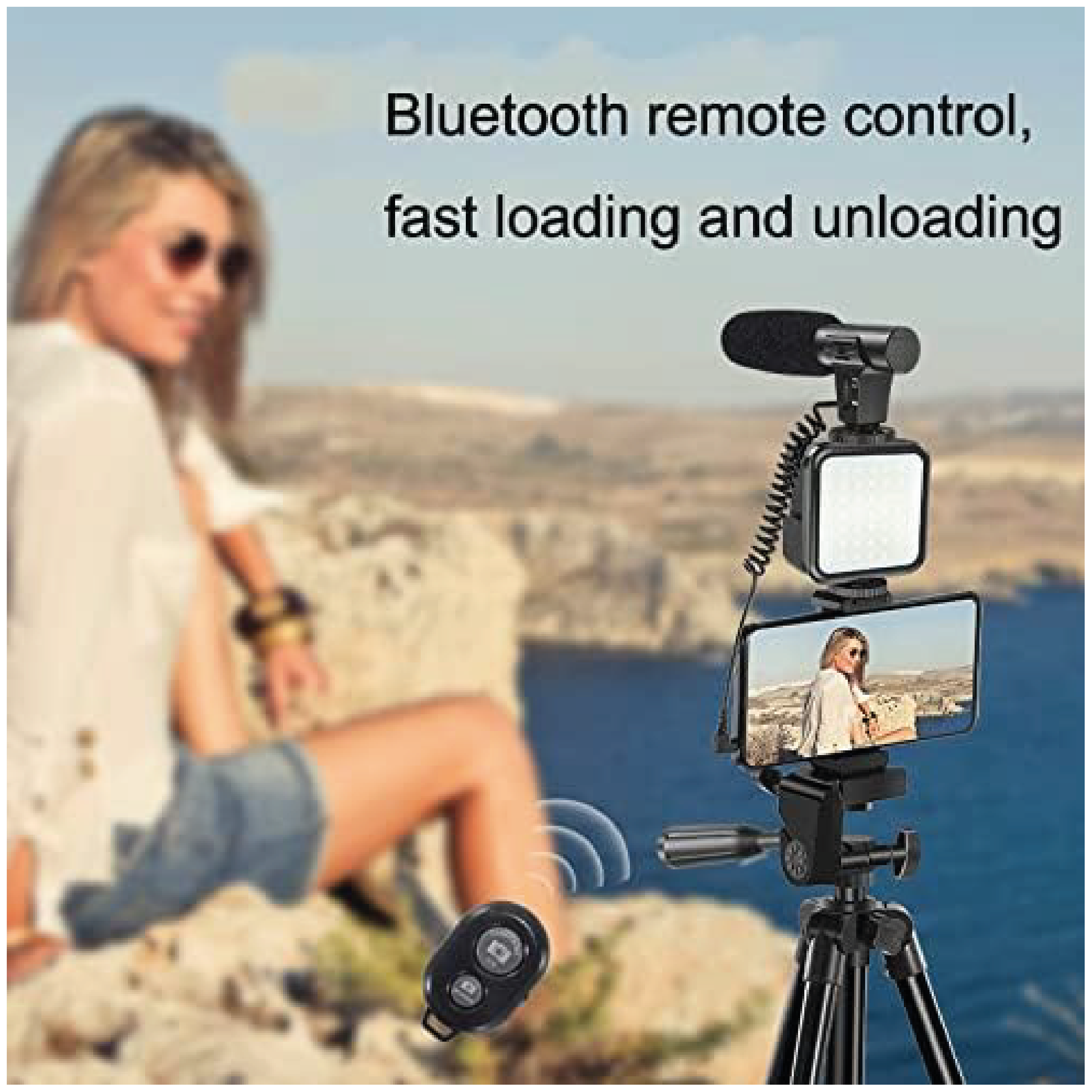 Este kit está diseñado para la creación de contenido de video de alta calidad, ideal para vloggers, streaming y grabaciones móviles. Incluye un trípode ajustable, iluminación LED, micrófono y soporte universal para teléfono.