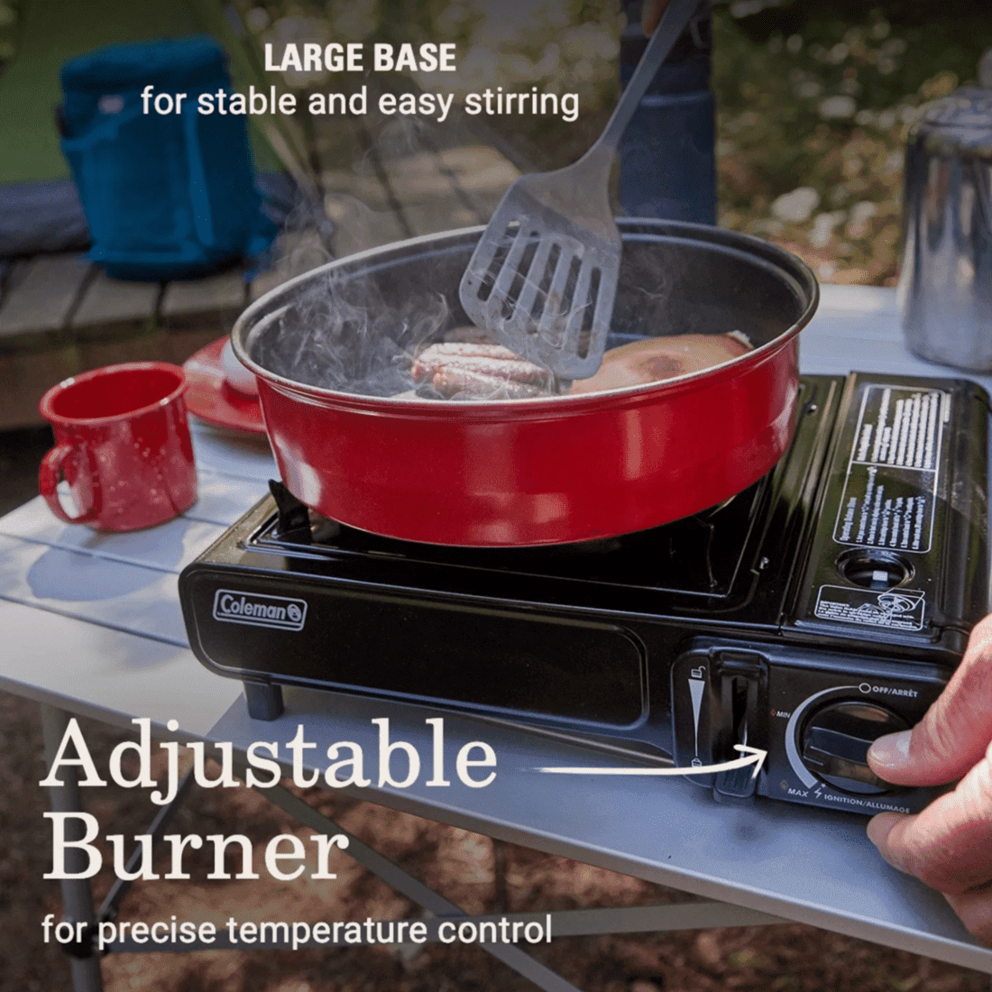 • Dura hasta 1.25 horas con el quemador en alto, con un cilindro de 8.8 oz (Se vende por separado)