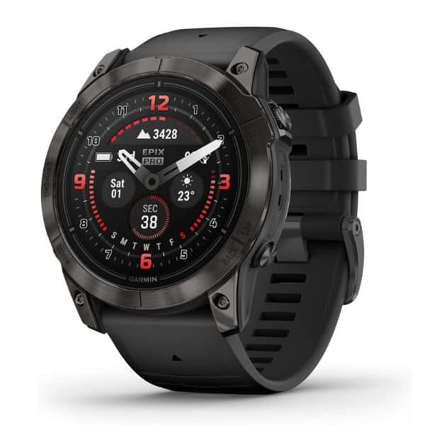 Garmin Epix Pro 2 51mm Gris (010-02804-00): Especificaciones técnicas\n\nPantalla:\n\nPantalla AMOLED de 1.4"\nResolución 450 x 450 píxeles\nCristal de zafiro resistente a los arañazos\nPantalla táctil con gran capacidad de respuesta\nBotones tradicionales\nCarcasa:\n\nCarcasa de polímero reforzado con fibra de 51mm\nBisel y cubierta trasera de titanio\nPeso: 89 g\nBatería:\n\nHasta 31 días de duración de la batería en modo reloj inteligente\nHasta 42 horas en modo GPS con actividad multibanda\nHasta 6 días en modo ahorro de batería\nFunciones de entrenamiento:\n\nMétricas de entrenamiento avanzadas, como VO2 máximo, estado de entrenamiento, efecto del entrenamiento y recuperación\nInformación de recuperación, como tiempo de recuperación, HRV y sueño\nMás de 140 perfiles de actividad multideporte\nEntrenamientos precargados y personalizables\nGarmin Coach: planes de entrenamiento personalizados\nClimbPro: te muestra la información clave de cada ascenso\nPacePro: te ayuda a mantener un ritmo objetivo durante tus carreras\nFunciones de salud y bienestar:\n\nMonitor de frecuencia cardíaca 24/7\nMonitor de SpO2 (saturación de oxígeno en sangre)\nMonitor de sueño con puntuación de sueño\nSeguimiento del estrés\nSeguimiento de la mujer\nBody Battery™: monitoriza tu nivel de energía\nFunciones de navegación:\n\nOutdoor Maps+: mapas a todo color con navegación paso a paso\nBrújula de tres ejes\nAltímetro con barómetro\nGPS multibanda con recepción GNSS y Galileo\nTracklogs y waypoints\nFunciones de conectividad:\n\nNotificaciones inteligentes\nGarmin Pay™: pagos sin contacto\nLiveTrack: permite que tus amigos y familiares sigan tus actividades en tiempo real\nConnect IQ™: descarga de aplicaciones, caras de reloj y campos de datos adicionales\nEn la caja:\n\nReloj inteligente Garmin Epix Pro 2\nCable de carga\nDocumentación
