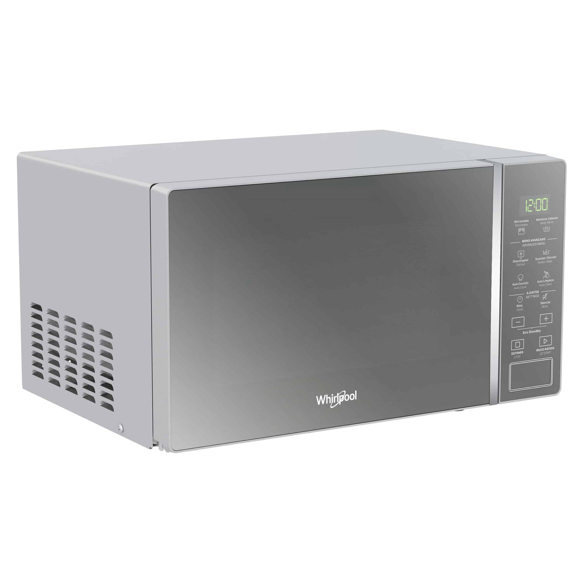 WhirlpoolHorno microondas - 0.7 pies cubicos - 20 litros - potencia 700W - inicio rápido +30 segundos + display LED verde - plato giratorio - 5 niveles de potencia - 12 opciones de auto cocción: palomitas, café, tacos, chilaquiles, pizza, arroz, papa, huevos revueltos, fajitas, sopa, salsa, brownies - 6 opciones para suavizar - 4 opciones para descongelar - función mantener caliente - función auto limpieza - reloj - opción para silenciar - modo Exo Standby para ahorro de energía. Dimensiones: Ancho: 45.5 / Alto: 26.2 / Profundidad: 31.5 - Peso: 12kg - color: silver