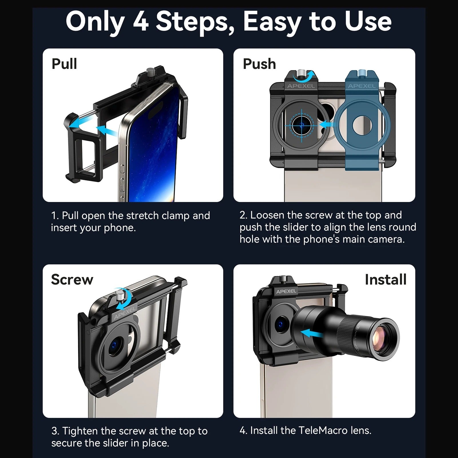 Monocular Apexel Apl-Tm6 Kit De Teleobjetivo Macro Para Teléfono Móvil, Teleobjetivo 6X + Lente Macro De 150Mm Con Soporte Para Teléfono