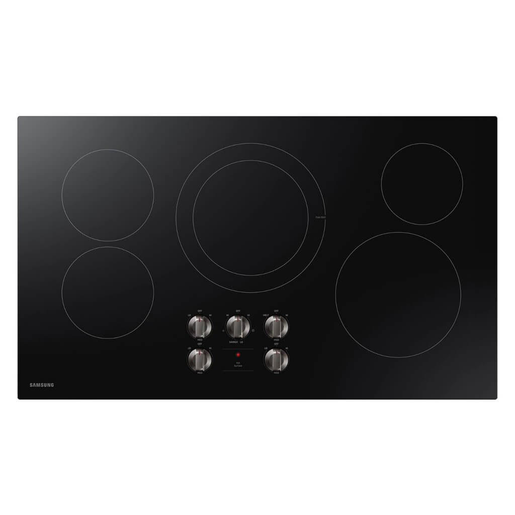 Características General Marca Samsung Color Negro Número de parte NZ36R5330RK/AA Tipo Eléctrico Flexible Sí Controles Perillas metálicas Perillas iluminadas Sí Conectividad WiFi Sí Tamaño 36" (91.44 cm) Dimensiones 91.44 x 12.95 x 53.97 cm Peso 18.68 kg Estufa Tipo de superficie Vitrocerámica Tipo Electric Radiant Poder 10 kW Número de discos 5 Indicador de superficie caliente Sí Potencia de la Estufa Frente izquierdo 7" - 1500W Frente derecho 9"/6" - 3300W Trasero izquierdo 7" - 1500W Trasero derecho 6" - 1200 W (fusión) Central 12"/9"/6" - 3000W