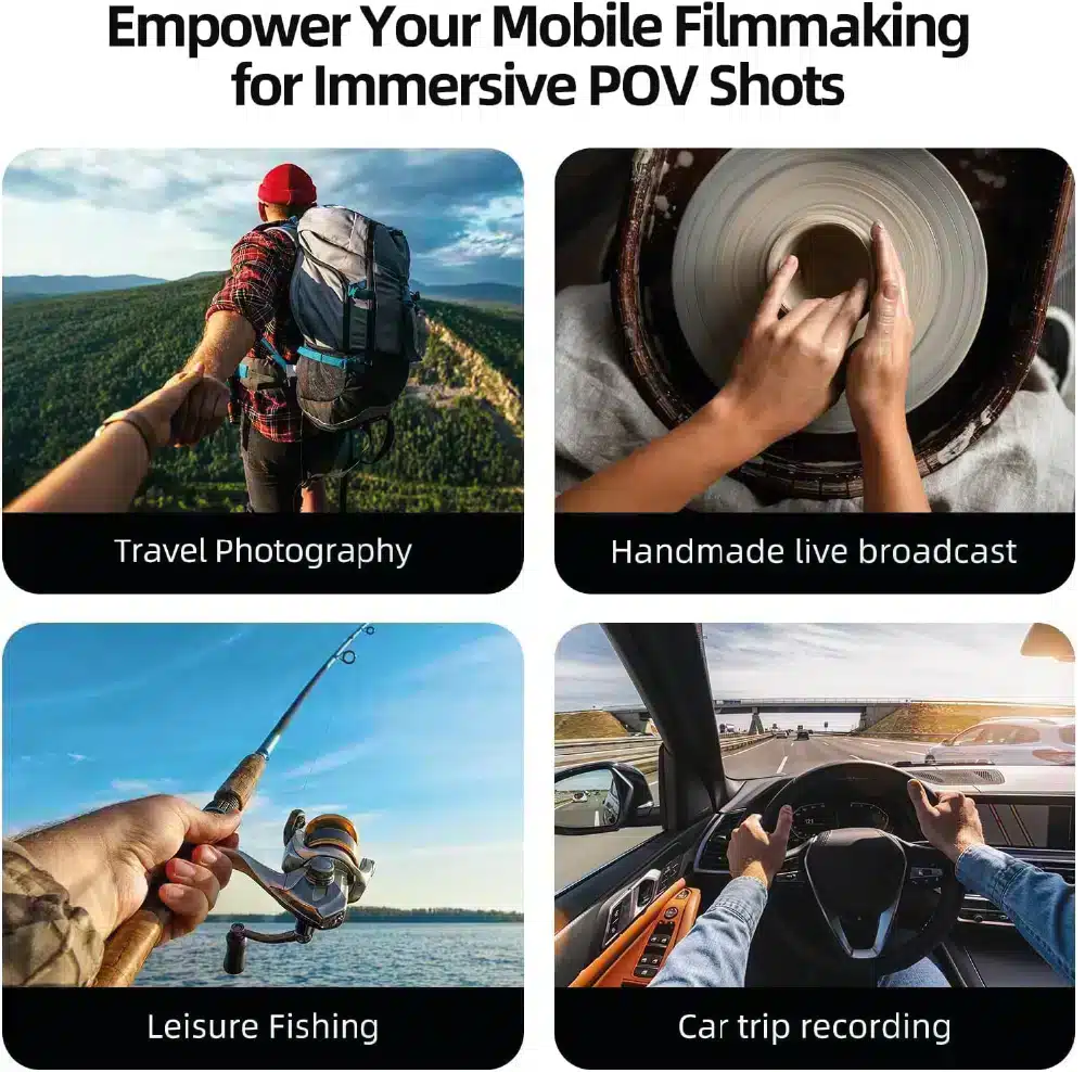 Disparo de 360° Multi Angle: Esta mano de soporte para teléfono celular permite a los jugadores disparar un gran VLOG/POV desde una perspectiva en primera persona. Satisface las principales necesidades de disparo de vídeo corto, pantalla horizontal y vertical, disparo aéreo a voluntad, fácilmente bloqueado en cualquier posición para proporcionar el modo de ángulo de visión horizontal o vertical. Soporte magnético para teléfono inteligente adecuado para grabación como bicicleta, gimnasio, cocina, pesca, correr, ciclismo, senderismo, camping, registros de viaje, etc.